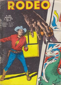 remarques: | numéro 225 du 5.5.1970 - Miki le ranger, Magic Face le kidnappeur - Texas le ranger, le seigneur des abysses >> Rodeo ne comprend plus que les deux bandes principales de Miki et de Tex Willer, les deux rangers avec en prime quelques thèmes documentaires mais la qualité de ces deux séries baissent quelque peu tant pour le texte que pour le graphisme, en outre les bandes de Miki sont souvent reprises de parutions antérieures dans Nevada (1958) |