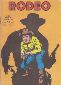 remarques: | numéro 235 du 5.3.1971 - Miki le ranger, Sekana la reine des neiges - Tex le ranger, trafic d'opium + doc. sur l'électricité >> Rodeo ne comprend plus que les deux bandes principales de Miki et de Tex Willer, les deux rangers avec en prime quelques thèmes documentaires mais la qualité de ces deux séries baissent quelque peu tant pour le texte que pour le graphisme, en outre les bandes de Miki sont souvent reprises de parutions antérieures dans Nevada (1958) |