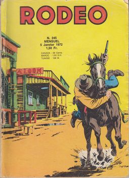 remarques: | numéro 245 du 5.1.1972 - Miki le ranger, le fils de Flèche Brillante - Tex le ranger, voyage pour l'enfer + doc. le diamant >> Rodeo ne comprend plus que les deux bandes principales de Miki et de Tex Willer, les deux rangers avec en prime quelques thèmes documentaires mais la qualité de ces deux séries baissent quelque peu tant pour le texte que pour le graphisme, en outre les bandes de Miki sont souvent reprises de parutions antérieures dans Nevada (1958) |