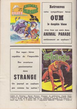 remarques: | numéro 258 du 5.2.1973 - Miki le ranger, Nuage Noir chef delaware - Tex le ranger, les trois flammes + doc. l'écureuil et l'orthopédie |