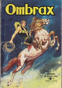 remarques: | série de 242 numéros du 10.2.1966 au 10.3.1986 mensuel, dos carré, N&B, 128 pages au prix de 1,20 fr Ombrax est une revue petit format publiée par les Éditions Lug, la revue publia surtout les aventures d'Ombrax (Alan Mistero en Italie), un personnage créé par le trio italien Pietro Sartoris-Dario Guzzon-Giovanni Sinchetto à qui l'on doit aussi Blek et Capt'ain Swing, à partir du no 210 jusqu'à la fin, c'est Martin Mystère d'Alfredo Castelli et Giancarlo Alessandrini qui prendront la suite, parmi les personnages secondaires, il y eut: Bob Lance de Luciano Bernasconi, Brak, Quentin Durward, le chevalier d'Harmental, Anges de l'enfer, Martin Mystère et Wampus au no 243, la revue change de formule pour devenir Ombrax-Saga, avec un format plus grand et un contenu composé de super-héros Marvel, elle s'arrêta au no 258 de juillet 1987 seuls les 6 premiers numéros sont collectionnés ici à titre d'exemplaires représentatifs de la série Ombrax, numéro 1 du 10.2.1966 - Ombrax le ranger, bande similaire à Miki le ranger avec les compagnons d'Ombrax: Gras Double (= Double-Rhum) et le baron de Castagnac, vicomte de Drolignac, de Parpignac et de Bluffignac - Quentin Durward (histoire moyenâgeuse) - Brak, l'homme aux poings d'acier (aventure) >> des bandes somme toute plutôt moyennes mais assez bien dessinées |