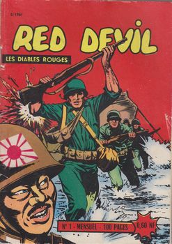 remarques: | série de 23 numéros de 5-1961 à 3-1963 mensuel, N&B, 100 pages au prix de 0,60 fr seul le numéro 1 est collectionné ici à titre d'exemplaire représentatif de la série Red Devil, numéro 1 de mai 1961 avec - Red Devil, les diables rouges (les marines), guerre du Pacifique - Bill Luster le gentleman-cowboy, l'abîme de feu - les trois vikings (humour) - Guillaume Tell, deux épisodes: la révolte et les vantardises de Guillaume Tell (des histoires moyenâgeuses qui n'ont guère à voir avec le Guillaume Tell suisse sauf son ennemi Gessler) >> des bandes sans grande prétention |