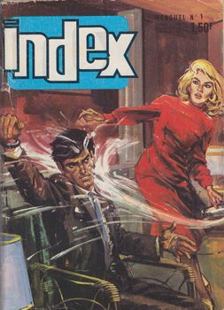 remarques: | série de 16 numéros de 11-1972 à 2-1974, mensuel, N&B, 132 pages au prix de 1,50 fr >> seul le numéro 1 est collectionné ici à titre d'exemplaire représentatif de la série Index numéro 1 du 10.11.1972 avec - Ralph King, prof. d'escrime, plus connu sous le nom d'Index, titre: une bombe aux Caraïbes - le samouraï, un vieux guerrier japonais - les naufragés (aventure) - l'appât (aventures nautiques) >> des aventures de moyenne qualité |