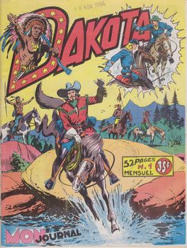 remarques: | série de 42 numéros de 11-1954 à 4-1958 (21x16 cm), n.b. c'est la suite de la série Brik, 18 nos (1949) et Brik Yak, 55 numéros (1950-1954) mensuel, N&B, 52 pages au prix de 35.- fr bandes principales: Silver Scout, Bill l'Eclair, Prof. Pipe, Tony Sheriff, Barry la Fodure, Dorian, Condor du désert >> voir aussi la série Whipee seuls les 10 premiers numéros sont collectionnés ici à titre d'exemplaires représentatifs de la série >> à noter pour cette série: des couvertures de fascicule bien réussies Dakota numéro 1 de novembre 1954 - Silver Scout, un célèbre éclaireur jouant de la guitare contre Big Wolf, la terreur de la prairie - 4 sans timonier (humour) - Richard le Hardi, sous le signe du dragon d'or - Bill l'Eclair (un genre de Buffalo Bill, quelque peu dans le style de Giffey) - Tati, le jeune athlète (aventure) >> Bill l'Eclair reste toutefois la meilleure bande de par le graphisme et le texte et qui constitue les couvertures des fascicules Information la suite, du no 43 à 64 éditée en petit format (18x13 cm), soit 22 numéros (1958-1960) avec principalement Rex le condor du désert, Barry la Foudre, professeur Pipe, Diable Rouge et Somba le rusé |