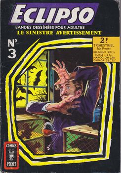 remarques: | Eclipso, numéro 3 de 10-1968 - le sinistre avertissement - Eclipso, la pierre de lune - l'abominable retour (angoisse) - Hawkman, Shrike frappe la nuit - la patrouille Z, un combat de cauchemar contre le robot superdoué Cliff, description >> p. 141 - 2 heures de sursis |