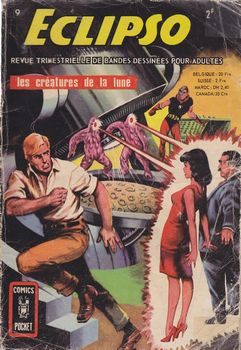 remarques: | Eclipso, numéro 9 d'avril 1970 - Eclipso, les créatures de la lune dernier épisode avec Eclipso - l'envoyé du diable - l'appel de l'au-delà - un jour dans la vie de Dynamo, l'agent le plus célèbre de la Thunder - Weed le magnifique, un autre agent de la Thunder - 60 secondes mortelles, l'histoire qui se déroule en une seule minute - l'allié surnaturel du docteur 7 - le dessinateur Chester, la loyauté - Phantasmo (le Spectre), tu vas mourir |