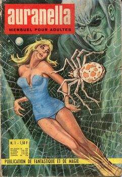 remarques: | série de 26 numéros de 9-1966 à 12-1968 mensuel, publication de fantastique et de magie, N&B, 132 pages, au prix de 1,50 fr une bande très inspirée de Barbarella >> seuls trois numéros sont collectionnés ici à titre d'exemplaires représentatifs de la série Auranella, numéro 1 de 9-1966 les fantômes de la galaxie l'héroïne Auranella est une belle princesse exilée de sa planète par le tyran Tanatos, à ses côtés, le jeune Antar qui aime Auranella risque sa vie continuellement pour la sauver des pièges que lui tend le maléfique Tanatos et ces deux vagabonds de l'espace cherchent à détruire la planète du tyran |