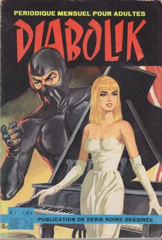 remarques: | série de 51 numéros de 8-1966 à 12-1969 publication de série noire dessinée, mensuel, N&B, 132 pages, au prix de 1,50 fr Diabolikm, no 1 première série d'août 1966 musique et sang Diabolik est un aventurier fantastique et le génie du mal, il dispose, grâce à son esprit inventif des astuces, les plus incroyables comme des moyens scientifiques les plus modernes pour accomplir ses forfaits façe à lui, l'inspecteur Ginko de l'Interpol, esprit lucide et ordonné s'acharne à défendre la société contre ce génial criminel, c'est une lutte éternelle entre le Bien et le Mal Information Diabolik est une série de bande dessinée italienne, créée en 1962 par les sœurs Angela et Luciana Giussani cette série éditée à Milan au format poche par les éditions Astorina a connu de nombreux dessinateurs, on sait peu de choses à propos de Zarcone, qui illustra assez malhabilement le tout premier numéro, mais l’identité visuelle des personnages prendra rapidement de l’ampleur avec Gino Marchesi, puis par d'autres dessinateurs dont Sergio Zaniboni (également créateur du célèbre logo de la marque Panini), Edgardo Dell'Acqua, Paolo Ongaro, Alarico Gattia, Lino Jeva, Floriano Bozzi ou encore Franco Paludetti, la plupart du temps, les crayonnés sont dessinés par un artiste, encrés par un autre et, pour donner des effets de profondeur, une trame – élément fondamental de l’esthétique de la série - est ajoutée par les graphistes de la maison d’édition, les histoires ont été élaborées par Angela puis Luciana (à partir du numéro 14) Giussani à partir d’idées de nombreux scénaristes dont Mario Gomboli il s'agit d'une des bandes dessinées les plus connues en Italie, où son tirage mensuel (pour les épisodes inédits) oscille autour de 110 000 exemplaires, en France, elle fut publiée de 1966 à 1980, dans le petit format original (12x17 cm) mais aussi remis en page dans un format inédit, plus grand (19,5x27,5 cm) il existe actuellement en Italie trois publications mensuelles de Diabolik, la première, éditée le 1er de chaque mois, propose des épisodes inédits, la seconde, Diabolik R (R pour Ristampa, qui signifie réimpression en italien) réédite le 10 de chaque mois des épisodes publiés une quinzaine d'années auparavant, en aménageant parfois les dessins lorsque ceux-ci sont trop datés ou malhabiles, la troisième série enfin, nommée Diabolik Swiisss (Swiisss étant l'onomatopée du son produit par le couteau de Diabolik en fendant l'air), publiée le 20 de chaque mois, réédite également d'anciens épisodes mais avec 40 ans de décalage et en respectant cette fois les éditions originales la quatrième de couverture présente toujours le portrait du personnage central de l'épisode, le plus souvent féminin. à ces 3 publications plus ou moins régulières s’ajoute un nombre considérable de rééditions (avec des formats différents, des versions colorisées, des recueils thématiques, etc.) souvent vendues comme supplément à des quotidiens (la Repubblica, Il Corriere della Sera) ou des hebdomadaires (l’ Espresso) |