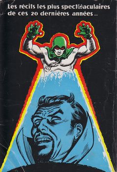 remarques: | Spectre est une revue de l'éditeur Arédit/Artima dans la collection Comics Pocket 4 numéros d'avril 1967 à janvier 1968, 168 pages, prix 1,50 fr stoppé par la censure, il sera remplacé par Eclipso avec un sommaire quasi-identique, on peut dire que Spectre est la première revue à avoir proposé du super-héros en France (en tous cas, chez Artima) précédant de 2 ans Fantask et de 3 ans Strange, Spectre a ouvert la voie chez Artima à d'autres revues aux succès devenu mythique comme Eclipso, Etranges Aventures ou Aventures Fiction (2e série) sur les bases de comics sans héros fixes accompagnés d'histoires courtes les super héros proposés à l'époque sont le Spectre (Jim Corrigan), les Challengers de l'Inconnu (4 risques-tout qui ont échappé à la mort individuellement et ont décidé de se réunir pour lutter contre l'adversité), la patrouille Z (Doom Patrol en anglais qui ont inspiré les célébres X-Men et non pas l'inverse car aux USA leurs aventures ont été publiées 2 mois avant le premier X-men), on y découvre aussi des membres de la Société de Justice comme Hourman, Docteur Fate, Green Lantern, Flash (rebaptisé Fulmo dans le numéro 3), le sinistre Eclipso un double maléfique de Bruce Gordon, Hawkman le célébre thanagarien, exilé sur terre avec sa compagne Siayera, le prince Râ-man (qui a peut'être inspiré le Docteur Strange chez Marvel ) n.b. il y eut quelques autres séries utilisant le nom de Spectre soit 1/ Spectral,chez Arédit, 15 nos de 9-1974 à 7-1977 avec la créature des marais 2/ Spectral, chez Arédit, 25 nos de 1-1978 à 1-1984 3/ Spectral, chez Aredit, 16 nos de 5-1985 à 4-1988 Spectre, numéro 1, d'avril 1967 avec - la guerre qui ébranla l'univers, le Spectre alias Jim Korrigan contre le démoniaque Azmodus - les challengers, le labyrinthe de la peur - l'allié d'Eclipso - échec à Psycho-Pirate par dr Faustus et le sablier - parti sans laisser d'adresse - le Spectre, la sinistre barrière = le combat des ombres contre Shatan, le maître de Diso, le souverain de l'univers anti-matière et son assistant Azmodus - le procès d'Eclipso >> des aventures en partie plutôt originales et bien dessinées Information les personnages de Spectre, une série fantastico-scientifique-fictive, avec comme thème principal, la lutte entre le Bien et le Mal 1/ le Spectre alias Jim Corrigan, une créature double et surnaturelle, représentant du Bien sur terre, deviendra plus tard Phantasmo, l'être astral son plus grand ennemi: Shatan, maître de Diso (univers anti-matière) et son assistant Azmodus qui cherche à s'emparer de la terre (univers matière) 2/ Eclipso, c'est le double démoniaque du savant Bruce Gordon (un genre de dr. Jekyll et mr. Hyde), le maître de la pierre noir, il se manifeste à chaque éclipse et réintègre Bruce Gordon lors d'une violente émission de lumière 3/ dr Faustus alias Kent Nelson, un maître magicien en sciences occultes, se fait aussi appeler le chevalier merveilleux et son compagnon le sablier alias Rex Tyler, un superman avec une super-énergie qui dure 60 minutes grâce à Miraclo, la pilule chimique, son ennemi principal: le psycho-pirate alias Roger Hayden, un madman aux pouvoirs super-psychiques 4/ les Challengers dont les membres sont: Red Ryan un alpiniste, Ace Morgan un pilote de jet, Haley, un plongeur sous-marin et Rocky Davis, un champion de lutte 5/ la patrouille Z dont les membres sont - dr Niles Caulder, chef et fondateur, doté d'une super intelligence (intervenant depuis sa chaise-roulante) - Rita Farr, la femme élastique, dotée d'un grand pouvoir d'expansion et de contraction - Larry Trainor, double de Nega, l'homme radio-actif mais vulnérable au plomb - Cliff Steele, ancien casse-cou, son corps détruit, son cerveau est implanté dans un robot doté d'une force gigantesque - Barry Alen alias Flash alias Fulmo surnommé l'éclair rouge = l'homme le plus rapide de l'univers 6/ le prince Râ-Man alias Mark Merlin, maître de l'esprit (l'esprit de Memakata) sujet d'Imhotep, adversaire de Vulkati représentant les forces du mal qui contrôle aussi le son, la lumière et en partie le temps 7/ Hawkman alias Carter Hall, l'homme-faucon et Shiera sa compagne, tous deux originaires de la planète Thanagar 8/ - Sport-Master avec la chasseresse (une femme-tigre) - Chat Sauvage, alias Ted Grant, le justicier d'Amérique, un ex-boxeur poids lourd - Canari Noir, alilas Dinah Drake Lance, la compagne de Starman - Starman alias Ted Knight, un homme puisant son énergie depuis la lumière stellaire et utilisant une baguette cosmique, adversaire d'Inviso qui rend les corps invisibles 9/ les Faucons Noirs, aviateurs, défenseurs de la loi 10/ Mister Blaze, le maître du feu 11/ Deadman, alias Boston Brand, privé de son droit au repos éternel, éternel, invisible, inaudible mais autorisé à fréquenter et contrôler les corps des autres 12/ les Vengeurs (Avengers) avec - Thor, dieu du tonnerre, adversaire de Loki, le dieu du mal - Hulk, Iron-Man, l'homme-fourmi, la femme-guêpe 13/ la T.H.U.N.D.E.R. une agence anti-criminelle contre le gang de l'Araignée avec - Dynamo l'homme fort, Noman l'androïde invisible, Eclair l'homme-vitesse 14/ Hal Jordan alias Jordan Green et sa bague magique 15/ le martien J'oon J'onzz dont le feu est le seul point faible 16/ Andor, l'humanoïde sans esprit, le malheureux allié des forces du mal 17/ le prince Namor surnommé Sub-Mariner, le monarque de la mer |