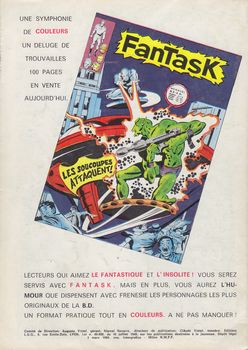 remarques: | série de 6 numéros de 3-1969 à 8-1969, intitulé bande dessinée du fantastique et de l'insolite mensuel, N&B, format 17x24 cm, 100 pages au prix de 2,0 fr Wampus numéro 1 de mars 1969 - Wampus, le monstre extra-terrestre, 1er épisode Wampus a la capacité de changer sa forme en se mettant dans l'eau, il obtient sa forme initiale avec des pouvoirs extraordinaires en contact avec le feu il est dirigé depuis l'espace par un grand mental qui le pourvoit d'une énergie sauvage, colossale et mystérieuse avec laquelle il cause mort et destruction sur son passage n.b. les 6 cahiers de cette série ont été frappés de la censure, mais on ne voit guère les raisons car au fond Wampus n'a pas une figure terrifiante malgré sa cruauté - mister Song, un épisode en 2ème partie du fascicule un genre de super agent d'assurance >> si le scénario et le graphisme de Wampus sont dignes d'intérêt, on n'en peut pas en dire autant de mister Song annexes - 1er et 4ème plat de Wampus numéro 1 - couverture de Mustang no 303 Wampus a connu plusieurs rééditions dans des petits formats dont celui de Mustang avec une figure autrement plus terrifiante que dans le fascicule Wampus Information Wampus est une série française de bande dessinée créée par Marcel Navarro, écrite par Franco Frescura et illustrée par Luciano Bernasconi, créée en 1969 pour le compte des éditions Lug, la série donnait à l'origine son nom à une revue en petit format, elle est notamment connue pour avoir été victime de la censure au bout de six épisodes Wampus est une créature extraterrestre polymorphe, envoyée d'une lointaine planète pour ravager la Terre et y préparer l'arrivée des siens, au physique, il s'agit d'une créature hideuse, plus ou moins humanoïde, dont le corps semble fait d'une gelée blanchâtre, il peut adopter la forme de n'importe quel être vivant, humain ou animal, en se plongeant dans l'eau; il faut le plonger dans les flammes ou l'électrocuter pour lui faire recouvrer sa forme véritable, il peut en outre émettre par les yeux un rayon capable de faire fondre le métal ou de provoquer des incendies, être maléfique, voire sadique, Wampus sème la mort et la destruction tout en se livrant régulièrement à des actes de cruauté gratuite Seul le journaliste français Jean Sten connaît l'existence de Wampus, il tente, souvent sans succès, de faire obstacle aux projets malfaisants de l'extraterrestre six épisodes de la série paraissent en 1969, la revue publiée par Lug est ensuite interdite par la censure qui lui reproche sa violence quatre ans plus tard, les auteurs réalisent pour le compte de Lug une nouvelle série, intitulée l'Autre et dont huit épisodes sont publiés dans les numéros 11 à 18 de la revue Futura, il s'agit d'une nouvelle mouture de Wampus, dont une partie du scénario est reprise, afin d'échapper à la censure, cette nouvelle série est moins violente que la première: l'extraterrestre a une forme plus humanoïde que Wampus, tout en ayant des yeux identiques. un septième épisode de Wampus, réalisé par les auteurs en 1969, n'est publié qu'en 1985, lors d'une réédition complète de la série dans la revue Ombrax (n°211 à 233) en 2001-2002, pour le compte de Semic qui a repris le catalogue de Lug, la série est relancée par le scénariste Jean-Marc Lofficier, le temps de sept nouveaux épisodes, ceux-si sont publiés dans la nouvelle version de la revue Fantask puis dans Mustang (n°303 à 306) à la suite de l'arrêt de Fantask, si Lofficier remplace Frescourt au scénario, le dessin est toujours assuré par Bernasconi, mais cette résurrection donne lieu à de multiples rencontres avec les protagonistes d'autres séries publiées par Semic. Wampus a été également réédité dans les 12 numéros mensuels de RODEO (éditions Semic, puis Semic pocket), n°568 à 579, de décembre 1998 à novembre 1999 en 2010, Rivière blanche, la maison d'édition créée par Lofficier, publie en deux volumes une intégrale des deux séries, sous le titre les chroniques de Wampus, le premier volume contient les épisodes des deux époques de Wampus et le second l'intégrale de l'Autre, avec une conclusion inédite par Jean-Marc Lofficier et Luciano Bernasconi ainsi que quatre récits hors-série de Wampus |
