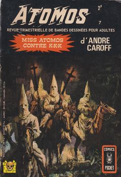 remarques: | Atomos, numéro 7 de mai 1970 - miss Atomos contre KKK - vaisseau spatial - le glacier de feu commentaires Mme Atomos: voir section livres, la série Atomos, collection Angoisse, édition Fleuve Noir, 17 volumes par André Caroff >> ces récits en bande dessinée sont une assez fidèle adaptation des romans d'André Caroff sur Mme Atomos, toutefois si le dessin est bien exécuté, la bande dessinée ne reproduit pas aussi bien le suspense dégagé en lisant les romans sans illustrations |