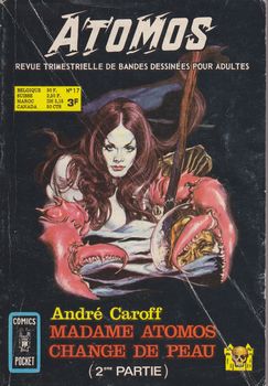 remarques: | Atomos, numéro 17, de novembre 1972 - Mme Atomos change de peau 2) - la villa de l'angoisse - le fantôme du festival commentaires Mme Atomos: voir section livres, la série Atomos, collection Angoisse, édition Fleuve Noir, 17 volumes par André Caroff >> ces récits en bande dessinée sont une assez fidèle adaptation des romans d'André Caroff sur Mme Atomos, jusqu'au numéro 11, ces aventures bénéficiaient d'un graphisme bien étudié, mais dès le no 12, changement de dessinateur avec un graphisme vraiment peu recherché, ce qui rend les cahiers bien moins intéressants malgré que à partir du no 15, le graphisme redevient meilleur sans toutefois égaler les illustrations des 11 premiers numéros alors que la bande dessinée ne reproduisait déjà pas aussi bien le suspense des romans de la collection angoisse |
