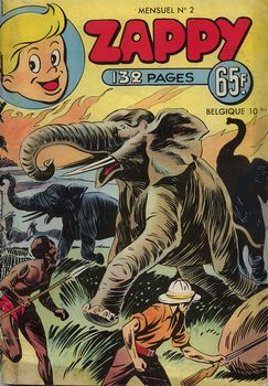 remarques: | mai 1954 - Zappy, Koko et Kiki - l'aventurier du Far West (western) by Bastard - jungle en flamme (guerre) by Van Straelen ** >> p. 4 la jarretelle qui va pouvoir fournir une fronde élastique et précise! - les hommes immortels (science-fiction) by Bastard ** - le démon rouge (western) by Bastard - l'héroïque traversée (guerre) by Melliès ** - l'anneau de Gygès (aventure) by Bourlès ** - Tom Tom, Chuck, Kat Karson = bandes humoristiques ** les meilleurs récits |