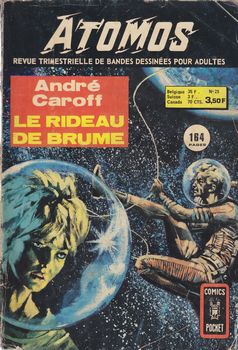 remarques: | Atomos, numéro 25 de juillet 1974 note de l'éditeur tous les romans de Mme Atomos ayant été maintenant adaptés en bandes dessinées et étant parus intégralement dans la publication Atomos, nous publierons désormais dans cette série d'autres romans écrits par André Caroff et parus aux éditions Fleuve Noir dans la collection anticipation même auteur, même style mais avec de nouveaux héros 1ère adaptation: le rideau de brume n.b. si les romans d'André Caroff sont dignes d'intérêt à la lecture, il vaut mieux les lire dans leur roman d'origine car les illustrations rendues dans les cahiers Atomos sont de qualité médiocre et ne rendant pas le même suspense que dans la collection Fleuve Noir, toutefois les couvertures des cahiers Atomos sont assez bien réussies |