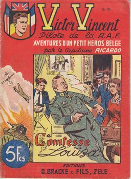 remarques: | un des premiers numéros de Victor Vincent, aventure d'un petit héros belge, pilote de la R.A.F. racontée par le capitaine Ricardo numéro 23, sans datation mais la couverture est déjà signée Funcken |