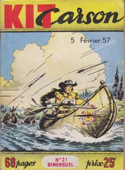 remarques: | février 1957 1/ le cheval doré de Petit Ours 2/ la course au fort Grant 3/ les contrebandiers d'armes les 3 épisodes sont peut'être de Campion + en fin de cahier, résultats (16ème olympiade): des jeux olympiques de Melbourne (1956) qui donnera lieu à un numéro spécial 16ème olympiade n.b. dernier numéro de la série collectionné, à partir du no 20 les aventures de Kit Carson deviennent moins passionnantes et moins bien dessinées, en fait seuls les dix premiers numéros sont super intéressants |