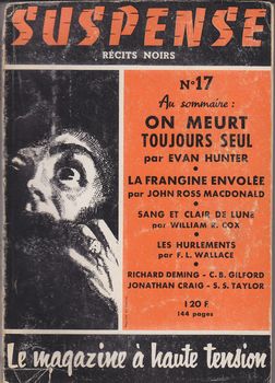remarques: | numéro 17, août 1957, contenu: - les Hurlements (Still screaming) - on meurt toujours seul (Good and dead) - 1957 - histoire d'Amour (Love Affair) - 1954 - mission (a Job for Johnny) - clair et net (a clear Picture) - par ici la Sortie (I'm getting out) - sang et Clair de Lune (Blood and Moonlight) - mon Fils, cet Etranger (That Stranger, my Boy) - la Frangine envolée (The Beat-up Sister) - tant va la Cruche à l'Eau (The Lady in Question) - Egalisation (I'll get even) |