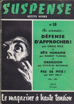 remarques: | numéro 18, septembre 1957, contenu: - défense d'approcher! (don't go near) - le Jury (the Jury) - 1955 - puissance paternelle (Custody) - 1955 - je resterai muet (I'll never tell) - obsession (Killing on 7th Street) - pas de Pitié ! (Kill Fever) - homme de Main (Tough Man) - leçon particulière (Preacher's Tale) - la bête humaine (Fight Night) - paiement au Maximum (Payment in full) - le Lit du Général (the General sleeps here) - chambard (Rumble) |