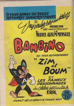 remarques: | éditions Mondiales (Del Duca), série de 35 numéros de 12-1957 à octobre 1960, mensuel, N&B, 68 pages, prix 25.- fr les séries sont constituées principalement de récits sur Robin des Bois, dessinateur inconnu, à partir du numéro 36, la série s'intitule "Mousquetaire" (16 nos) seul le numéro 1 est collectionné ici à titre d'exemplaire représentatif no 1 du 5.12.1957 avec - Robin des Bois, trois épisodes: débarquement manqué, chasse au trésor, à l'aide des croisés, - Mike en l'an 2000 (récit SF sur une catastrophe nucléaire) - Joé Texas, les grandes collines (western) - Top et Hop, l'anneau magique (humour) - Horn du West (western) by Le Rallic >> seule la série Horn du West est digne d'attention |