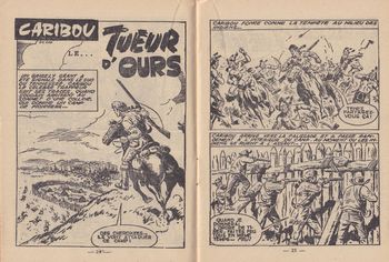 remarques: | série de 123 numéros, de juillet 1960 à septembre 1970, mensuel, 64 pages, N&B, prix -.35 fr Caribou n'est autre que le célèbre trappeur Davy Crockett, série d'origine anglaise n.b. le graphisme se rapproche quelque peu des dessins publiés dans la série indians 1957-1960 seuls les numéros 1 et 8 sont collectionnés ici à titre d'exemplaires représentatifs de la série no 1 du 5.7.1960 avec des bandes essentiellement de Caribou - Caribou et le traître - Caribou, le tueur d'ours - Caribou et la puissante médecine >> texte et scénario pas trop recherchés mais un graphisme assez intéressant |