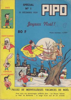 remarques: | numéro 1 spécial Noël du 15.12.1959, passez de merveilleuses vacances de Noël avec Pipo, Concombre, Fantasmak et Lapino - monsieur Volauvent, les rennes volantes - Tip, Top et Tap, les jouets ont disparu - Pipo, les chats sont verts - Pipo, le Noël de Bombarde - Pipo, le dompteur de mammouths - Séraphin le pinguin, accident de ski - Pipo, le songe d'une nuit de fin d'année >> des aventures humoristiques pas trop recherchées mais qui présentent en partie un certain charme |