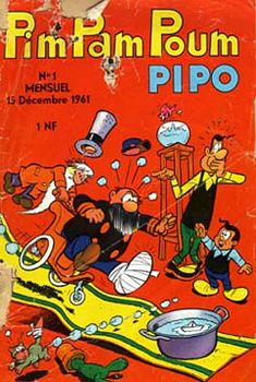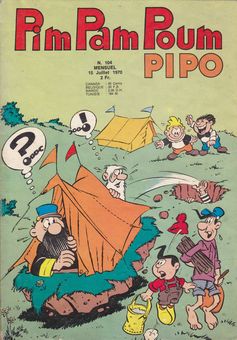 remarques: | numéro 104 du 15.7.1970, mensuel, prix 2.- NF - Pim Pam Poum, bandes de Musial dont la première: elle marche cette farçe? + quelques bandes de Dirks - Pipo, maudites pilules - le club des trois - un agent très secret - mister Magic, week-end avec l'ours ainsi que de courts épisodes avec Tracassin et les Terreurs >> un fascicule sans grand intérêt annexes - couverture du no 104 - couverture du no 1 de Pim Pam Poum Pipo (décembre 1961) |