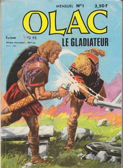 remarques: | cette 2ème série d'Olac ne connut que deux numéros, ce sont des planches de Don Lawrence réunies en albums, ce premier tome est rare, édité en moyen format, à la couverture souple et épais de quelque 130 pages no 1, Olac le gladiateur, mensuel, N&B au prix de 3,50 fr (Suisse 1,70 fr) - Olac le gladiateur, Attila fléau de Rome - Devy Crock, un fameux hoquet (humour) - Loup Blanc, l'indien (western) >> seuls les bandes d'Olac sont dignes d'intérêt |