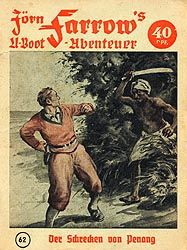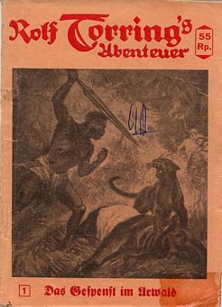 remarques: | Rolf Torring ist der Held der Romanheft-Reihe Rolf Torring's Abenteuer, die Verfasser der Abenteuerserie arbeiteten unter dem Sammelpseudonym Hans Warren die Reihe erschien zunächst zwischen 1930 und 1939 mit insgesamt 445 Fortsetzungs-Bänden beim Berliner Verlagshaus für Volksliteratur und Kunst, nach dem Zweiten Weltkrieg wurde die Reihe (inhaltlich und ideologisch der neuen Zeit angepasst) immer wieder neu aufgelegt, zunächst als Heftreihe, später auch als Nachdrucke in Buchform die direkten Vor- und Nachkriegshefte erzielen heute auf dem Sammlermarkt hohe Preise die ersten Romane erschienen in den dreißiger Jahren, nach über 400 Abenteuern war dann aber 1939 Schluss, war es das wirklich? ja und nein, bereits nach dem Zweiten Weltkrieg gab es weitere Romane über Rolf Torring, allerdings ist die Geschichte der Nachdrucke und Fortsetzungen ein wenig kompliziert und unübersichtlich die Serie spielt zumeist in Südostasien und Indien, oft aber auch in Afrika und zuweilen in China, in einigen Heften auch in Deutschland, in den alten Ausgaben (Vorkrieg) herrscht in den Heften jene imperialistische Mentalität, die auch heute noch in versteckter Form ähnliche Serien prägt und von Kritikern als "rassische Überheblichkeit" bezeichnet wird 1965 wurde Rolf Torring auch verfilmt, als moderner Gegenwartsheld im weißen Anzug, wird er in dem Rapid-Film Rolf Torring: "der Fluch des schwarzen Rubin" etwa im Stil der Kommissar-X-Filme von Thomas Alder verkörpert, wobei im Film wie in den Heften die exotische Kulisse immer noch die heimliche Hauptrolle spielt Nr. 1 printed in Switzerland, ohne Datum (ca. 1938) Kommissions-Verlag Adam-Walt Olten, 64 Seiten, ohne Bilder Titel: das Gespenst im Urwald kennzeichnend für Rolf Torring war die Erzählung aus der Ich-Perspektive seines Freundes Dr. Hans Warren, der ebenso wie der Schwarze Pongo zu seinen ständigen Begleitern zählt, daneben gibt es noch den zahmen Geparden Maha, Schauplätze der Abenteuer waren die malaysische Inselwelt, Asien, Südamerika und Afrika Information nach dem unerwartet großen Erfolg der Rolf-Torring-Abenteuer entschloss sich der Verlag "Neues Verlagshaus für Volksliteratur" der erfolgreichen Serie eine Ablegerserie zur Seite zu stellen, die im Gegensatz zur erfolgreich laufenden Vorlage, mehr auf ein jugendliches Lesepublikum zugeschnitten werden sollte, aus diesem Grund erhielt der Verfasser der Torring-Geschichten, Wilhelm Reinhard, alias Hans Warren, den Auftrag, auch eine Parallelserie zu entwickeln, bei der der Hauptprotagonist etwa im Alter der anvisierten Leserschaft stehen sollte, eingeleitet wurde die neue Serie im Band 82 der Rolf Torring-Reihe mit der Erzählung "die Tempel-Tänzerin", in dieser Geschichte begegnet Rolf Torring in Indien dem deutschen U-Boot-Kommandanten Hans Farrow, der sich nach der Beendigung des Krieges geweigert hat, sein U-Boot an die Alliierten zu übergeben, stattdessen setzt er sich mit seiner Mannschaft in die Südsee ab und erlebt dort allerlei spannende Abenteuer, ihm zur Seite steht sein achtzehnjähriger Sohn Jörn, am Ende des Bandes kündigt der angebliche Chronist der Torring-Abenteuer Hans Warren an, dass die Erlebnisse der U-Bootbesatzung so außergewöhnlich wären, dass diese demnächst unter den Titel "Jörn Farrow, der U-Boot Junge"“ erscheinen würden, 1932 erschien dann das erste Abenteuer unter dem geänderten Reihentitel "Jörn Farrow’s U-Boot-Abenteuer", bis zum Kriegsausbruch 1939 erschien dann Woche für Woche ein neues Abenteuer, bevor die Serie mit der Nummer 357 eingestellt wurde, als Verfasser der meisten Bände gilt wie bei Rolf Torring auch Wilhelm Reinhard, doch scheint dieser schon bald von seinem Bruder Hans Reinhard tatkräftig unterstützt worden zu sein. erst lange später konnte die Serie durch zwei weitere Bände aus dem Nachlass erweitert werden ab 1951 begann der Verlag mit einer Neuauflage der Serie, die 1960 mit dem Heft 241 eingestellt wurde, hielten sich die Hefte bis zur Nummer 166 noch bis auf kleinere Korrekturen an Format und Text der Vorkriegsausgaben, wurde bei den Heften 167 bis 218 nicht nur das Format umgestellt sondern auch größere Texteingriffe vorgenommen, ab Band 219 sind die Eingriffe dann so massiv, dass sie kaum noch etwas mit den Vorkriegsausgaben gemein haben, die Geschichten um Jörn Farrow spielen vorwiegend im pazifischen Raum und vereinzelt auch in Afrika, |