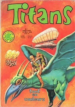 remarques: | 2 séries: - première série, nos 1 à 16 de 5-1963 à 8-1964, édition SFPI (science-fiction) - deuxième série, nos 1 à 13 de 11-1968 à 11-1969, édition Gemini (polar) (à ne pas confondre avec la série Titans 1976-1998 éditée par LUG) seule la première série est collectionnée ici n.b. la première série a fait l'objet d'une édition intégrale, un pavé de la bd = 1 volume de 480 pages, 1981, N&B, aux éditions Glenat >> voir album sous Titan fascicule Titan, no 1 de mai 1963, mensuel, N&B, 130 pages, 0,80 NF dessinateur principal: Pierre Dupuis - commandant Titan, Diamant IX ne répond plus, part 1 by Dupuis - Prince Axel (histoire Moyen Age) - Carletto Sprint (humour) - Morin Le Fort, les justiciers des mers du nord (aventure) >> seule la série de commandant Titan est digne d'intérêt annexes - Titan no 1 (science-fiction), couvertures 1er et 4ème plat - couverture Titan no 1 (polar, édition Gemini) - couverture Titans no 1 (édition Lug) Information il y a encore une troisième série mais intitulée Titans (avec un s): magazine pour la jeunesse publié de mars 1976 à mai 1998 par les éditions Lug (devenu Semic en 1989). à ses débuts, la revue publie exclusivement du matériel de l'éditeur américain Atlas Seaboard, les premières séries Marvel apparaissent dès le numéro 4 avant d'occuper tout le sommaire du magazine au numéro suivant, parmi les séries qui ont marqué l'histoire du magazine, on retiendra Star Wars, les nouveaux mutants, Dazzler et Excalibur la parution de Titans est interrompue au numéro 215 en décembre 1996 quand Semic perd les droits des séries Marvel, elle reprend au numéro 216 en décembre 1997 avec une nouvelle formule consacrée aux séries de l'éditeur Top Cow |