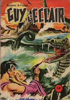 remarques: | aventures de l'espace avec Guy l'Eclair (Flash Gordon) série de 10 numéros de novembre 1963 à août 1964, mensuel, N&B, 132 pages, prix 1.- fr la série se poursuivra sous le titre Flash Gordon (6 nos 1964-1965) un pocket qui relate les aventures de Guy l'Eclair, frère ainé de Flash Gordon paru également chez Edi Europ et qui est dans le même style et de même qualité, fut dessiné par Alex Raymond puis par Dan Barry (dès le no 3) numéro 1 de novembre 1963 - Guy l'Eclair, la cruelle Rubia - mon petit chat noir (récit sentimental) - seulement quelques marches (horreur) - le journal de l'inspecteur H, meurtre au quartier chinois (policier) >> seuls les récits de Guy l'Eclair sont de quelque intérêt, un bon graphisme de Alex Raymond mais un scénario quelque peu mièvre et les couvertures des fascicules sont généralement de petite qualité Information il y eut plusieurs éditions en Français de Flash Gordon, outre les éditions en albums par Futuropolis, Dargaud, Serg, Slatkine, Hachette et Soleil, on trouve aussi en PF ou RC - édition Héritage, 11 numéros de 1975 à 1976 - édition Remparts, 8 numéros de 1973 à 1976 - éditions Poche DPE, 8 numéros 1981-1982 - édition super géant DPE, 11 numéros 1981-1982 DPE = Dynamisme Presse Edition annexes - couvertures 1er et 2ème plat édition Edi-Europ - couverture 1er plat édition Héritage - couverture 1er plat poche DPE - couverture 1er plat Remparts |