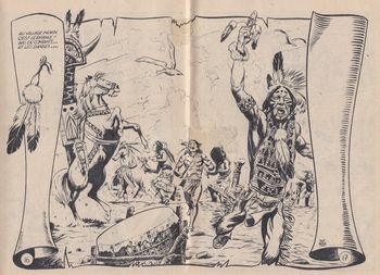 remarques: | numéro 48 de décembre 1954 - Bison noir (western) dessin: Jack de Brown, scénario: M.A. Dazergues avec un dessin pleine page au centre du fascicule >> des bandes dessinées sans grand intérêt, mais ce récit assez bien dessiné annexes - couverture no 48 - exemple de dessin pleine page |