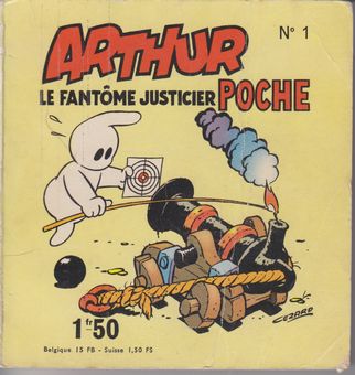 remarques: | une série de 54 numéros de 7-1964 à 10-1977, mini-format 10x12 cm, N&B, 196 pages, au prix de 1,50 fr gags principalement dessinés par Jean Cézard numéro 1 de juillet 1964 Arthur, le fantôme justicier 50% de jeux et 50% de gags >>> pas exceptionnel mais assez bien combiné |