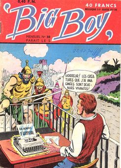 remarques: | numéro 38 du 5.11.1959 - la fantastique machine à écrire - le policier aux super-pouvoirs - la figure dans le brouillard - John Jones le martien, le fantastique faucon humain - l'homme au double destin - Roy Raymond, la menace des lueurs mortelles - il fallait rester à l'abri de l'air - Tommy Tomorrow, le boy planétaire (écrit Tomorro) - la menace de Multifax - le musée des inventions sans valeur >> de courts récits complets, la moitié du cahier comportant des récits extraordinaires et l'autre moitié des récits du Far West, il y a du bon et du mauvais mais toujours des aventures assez originales avec des titres fantasques n.b. à partir du no 21, la série ne contient pratiquement plus de récits sur le Far West + nette dégradation de la qualité dès le no 31 |