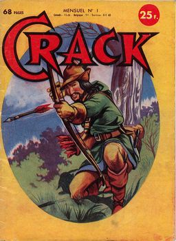 remarques: | 2ème série de Crack par les éditions Del Duca, d'abord avec le titre de Crack, puis Creek par les éditons R. Labois, puis Mondiale (Del Duca) 44 numéros de 1958 à 1962, seul le no 1 est collectionné ici à titre d'exemplaire représentatif no 1 de juillet 1958, 68 pages, N&B, mensuel au prix de 25.- fr - Robin des Bois, le baron de fer (histoire) by Souriau - Vic Terry, le cheval au pied fourchu (aventure) >>> contenu sans grand intérêt |