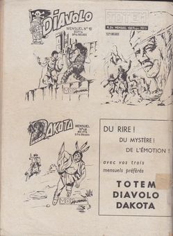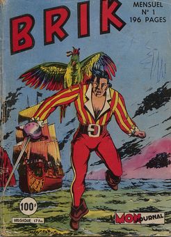remarques: | la série Brik aux éditions Mon Journal = Aventures et Voyages, 217 numéros d'avril 1958 à avril 1987, format 13x18 cm, mensuel, N&B, 196 pages, au prix de 100.- fr BD d'aventures avec des histoires de corsaires, si le dessin de Brik dans ce petit format n'est pas de Cézard, il semblerait que le graphisme dérive nettement des fascicules Brik nos 1 à 18 de 1949 à 1950, en tout cas les couvertures sont par contre souvent de lui (du moins dans les premiers nos) n.b et dès le no 7 de bons récits complets divers apparaissent au milieu du cahier jusqu'au no 13, après quoi la série se développe sans grand intérêt la série Brik mensuel créé en mars 1949 (format 24x36) avec 18 nos jusqu'en mars 1950 il fusionne avec Yak en avril 1950 et devient Brik-Yak (55 nos du 4-1950 au 10-1954), en avril 1958, il redevient Brik et passe au format de poche en redémarrant au no 1 en octobre 1970, il devient trimestriel (couvertures de Victor Peon), 196 pages jusqu'au no 53, puis 164 pages jusqu'au N°105 et 132 pages du 106 au 150, devenu trimestriel, il remonte à 164 pages du 151 au 176 pour redescendre à 132 ensuite et jusqu'à la fin, pour les couvertures, on retrouve les habituels artistes maisons: Victor Peon, Enzo Chiomenti, Augusto Pedrazza, Guido Zamperoni, Miro et quelques autres principales séries publiées dans Brik petit format: - Archibald - Calico Jack - capitaine Tempête - - capt'ain Vir-de-Bor - Carabine John - Cisco le vengeur - - Diavolo, corsaire de la reine - Erik, tête-folle - - Jezab - l'archer fantôme - l'hirondelle des mers - - le corsaire de fer - le messager du roi Henri - - les quatre magnifique - les trois mousquetaires - - professeur Cumulus - Rok l'invisible - >>> seuls les 18 premiers numéros sont collectionnés ici à titre d'exemplaires représentatifs de la série Brik numéro 1 du 1.4.1958 avec - Brik, corsaire du roi l'histoire est bien documenté mais le graphisme est de pauvre qualité - le capt'ain Vir-de-Bor (humour) ces récits d'humour paraîtront dans plusieurs fascicules des éditions Mon Journal - la cité des Aztèques (aventure) l'histoire de trois garçons, Will, Vasco et Tom, en Amérique du Sud - les aventures de Tam Tam (humour) - les aventures de Perlimpinpin (humour) - Carabine Jones, aventures durant la guerre de Sécession >> la série de Brik n'est pas encore des plus intéressante mais s'améliorera par la suite sauf pour Brik dont l'impression reste vraiment de petite qualité Information A/ Brik Brik, auteurs: Jean Ollivier, Maurice Limat, Jean Cézard, Jacques Arbeau puis Pedro Alferez, Enzo Chiomenti créé en 1948 par Jean Cézard pour le récit complet éponyme, le personnage a été repris en 1952 par Jacques Arbeau puis par le dessinateur espagnol Pedro Alferez et enfin par Enzo Chiomenti le corsaire Brik est le capitaine de la "Liberté", Brik et ses compagnons, anciens galériens injustement condamnés sous Louis XIII, sont devenus corsaires des Frères de la Côte, à bord de la frégate "Liberté", ils écument les mers du globe et mènent la vie dure aux autorités qui abusent de leurs pouvoirs ou aux pirates ennemis; parmi ses plus fidèles compagnons, il y a "Do" son second courageux et d'un sérieux indéfectible, Ripaille le quartier-maître rondouillard qui aime festoyer, Kobé le perroquet aussi bavard que fier ainsi que Dino et Mambo, deux enfants espiègles et débrouillards la série est classique, mais c'est un modèle d'aventures maritimes avec une dose d'humour, de courage et d'évasion sur un fond bien documenté B/ Mon Journal plus connu sous le nom de Mon Journal, cet éditeur s'appelait en fait "Aventures et Voyages" (du moins jusqu'en 1991 où il prit le nom de "Mon Journal") c'est Bernadette Ratier qui est à l'origine de cette nouvelle maison d'édition en août 1946, elle commence en lançant "Mon journal", un hebdomadaire en grand format qui donnera son nom à la fameuse collection, 86 numéros plus tard (du 8 août 1946 au 22 avril 1948), la maison d'éditions "Aventures et voyages" est créée et l'hebdomadaire cédait sa place à des revues au moyens formats (plus communément appelées récits complets) telles que Brik, Yak, (puis Brik-Yak) Marco Polo ou Diavolo le format diminuera un peu avec Dakota ou Biribu avant de passer au format de poche au milieu des années 50 tandis que la pagination augmentait. les titres se multiplient avec une majorité de bandes étrangères d'origine diverses (Italie, Grande-Bretagne, Espagne, Argentine etc.), mais aussi quelques auteurs locaux ou quelques bandes que l'éditeur fait réaliser à l'étranger comme Akim, Ivanhoé ou Lancelot, rapidement, les dessinateurs français n'auront plus leur place à part Michel-Paul Giroud comme bouche-trou dans quelques revues, les scénaristes continuant à travailler pour quelques séries phares comme Ivanhoé, Lancelot ou Sunny Sun, au début des années 80, l'affaire est cédée à Christian Chalmin puis à un groupe d'investisseurs qui, victimes de la désaffection du public, de l'explosion du cours du papier et par manque de compétence, font faire chuter les ventes, en 1991, le fonds de commerce concernant les BD a été cédé à "Mon Journal Multimédias" qui réédite quelques anciennes revues telles que: Akim & Capt'ain Swing depuis avril 1994 malgré l'échec d'Ivanhoé qui ne connut qu'une renaissance éphémère de janvier à octobre 2000 pour 10 petits numéros en mars 2004, Akim s'est arrêté à son tour après 120 numéros, à ce jour, il ne reste donc plus que Capt'ain Swing comme petit format, Sémic ayant décidé en décembre 2003 d'en arrêter la publication. |