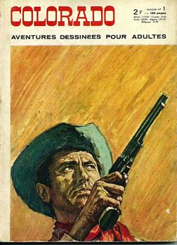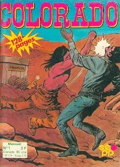 remarques: | une courte série de 4 numéros très rares, publiés en 1956 format 16x21 cm, 48 pages au prix de 35.- fr par les éditions S.F.P. = Société Française de Presse (groupe Chapelle) 3 autres séries connues: - 4 numéros publiés en 1961 sous le titre Colorado Kid by Edi Europ, Randal le cavalier au coeur d'or avec aussi Bill Breaker = Big Bill le casseur - 11 numéros publiés de 7-1968 au 9-1969 sous le titre Colorado (pour adulte) by SFPI, divers récits de western - 7 numéros de 1-1977 à 7-1977 sous le titre Colorado by la SEPP, avec Johnny Flame n.b. à ne pas confondre avec la série Kid Colorado (SER groupe Chott) >>> voir Kid Colorado les 4 numéros 1956 de la SFP du groupe Chapelle sont collectionnés ici au complet, les autres séries ne sont pas collectionnés ici Colorado no 1 de février 1956 - Red Ryder et Petit Castor, convoi pour la Californie by Fred Harman - Caramba et Alonzo (humour) by Jean Marcellin - sergent Dewy et le totem perdu (by Damas) >> des bandes reprises quelque peu de séries antérieures et sans grande prétention mais de jolies couvertures by Dupuis annexes - couvertures 1er et 4ème plat Colorado no 1, 1ère série - couverture Colorado Kid no 1 série Edieurop - couverture Colorado no 1 pour adulte by SFPI - couverture Colorado no 1 by SEPP Information les éditions SEPP étaient un éditeur de petit format assez mineur qui publia néanmoins de 1963 à 1977 (Société d'éditions et de publicité professionnelle?) |
