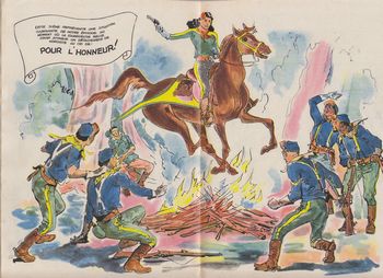 remarques: | numéro 4 du 9.5.1953 Belle Starr devient une cowgirl, genre Jane Calamity dans Pecos Bill, elle et Kid Oklahoma vivront ensemble de nombreuses aventures durang la guerre de Sécession + doc. sur les habitations des peaux-rouges >> une série quelque peu semblable à celle de Pecos Bill, mais si le scénario est encore acceptable, le graphisme est moins recherché que dans la série Pecos Bill |