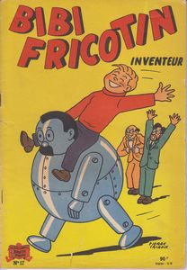 remarques: | cahier broché, 3ème édition AG, 50% couleur 50% noir&blanc, 48 pages, au prix de fr 90.-, 4ème plat PUB Pschitt, dernier titre: no 37 Bibi chasseur de fauves, illustrations Lacroix, texte Lortac Bibi, le farceur national, rencontre le prof. Radar qui lui fait voir ses inventions dont son automate perfectionné: un robot qui sera appelé par Bibi "Bille-en-Zinc" mais celui-ci fait encore plus de dégats que de bons services Bib et Radar partent en voyage en profitant de leurs inventions dont >> p. 15 la voiture avec cerveau-moteur lors d'élections pour la mairie de Fouilly-les Canards, le prof Radar sort vainqueur contre son concurrent le prof. Trublion qui jure de se venger >> p. 18/19 visite du domaine zoologique de Trublion où Bibi est chahuté par les phoques >> p. 21 apparition du robot de Trublion copié sur celui de Radar, mais Bibi démasque le faux robot, nouvelle invention du prof Radar pour maîtriser le temps (pluie et soleil) par la suite, Bibi est invité au collège de Campton en Angleterre (because he is a jolly good fellow) pour célébrer les fêtes de nouvelle année avec des farces et attrapes, finalement ce sera encore la lutte contre les bandits scientifiques dirigés par le famoso Doktor Olibrius Krockfric >>>>>>>>un cahier avec à nouveau le texte sous les images (ce sera l'avant dernier de ce genre), graphisme respectable mais le texte n'est pas du tout inventif malgré les nombreuses inventions |