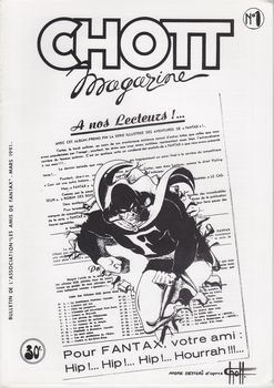 remarques: | Fantax est une série de bande dessinée française de super-héros, créée en 1946 par le scénariste J. K. Melwyn-Nash (Marcel Navarro) et par le dessinateur Chott (Pierre Mouchot, également éditeur de la série), ce fut l’un des premiers héros costumés publiés dans la presse française et, sans doute, le plus connu de son époque. un certain nombre d'épisodes ont été dessinés par Robert Rocca (alias Bob Roc), Marcel Navarro assure les scénarios jusqu'au no 29, après quoi Chott le remplace, la série remporte en son temps un très grand succès commercial, mais a maille à partir avec la censure qui lui reproche sa violence, elle cesse de paraître en 1949, en raison de la nouvelle loi sur les publications destinées à la jeunesse, huit nouveaux épisodes paraissent en 1959, scénarisés par Chott et illustrés par Rémi Bordelet le numéro 1 est paru en juillet 1946 avec 12 pages au prix de 12.- fr, format 21x29 cm couverture & illustrations par Pierre Mouchot sous le pseudonyme de Chott, scénario de Marcel Navarro sous le pseudonyme de J.K. Melwyn-Nash, qui allait devenir le patron des éditions Lug, puis par la suite importer en France les comics de Marvel tels que: Spiderman, le surfeur d'Argent, Conan le Barbare, les 4 Fantastiques, les X-Men, etc...), tout en imaginant des héros de BD comme Wampus, Zembla, le petit Duc Chott magazine no 1 de mars 1991 n.b. il semble que la parution de cet ouvrage d'étude sur Chott n'ait eu qu'une édition éphémère, aucun autre numéro n'étant connu à ce stage et pratiquement non mentionné dans le BDM ou la Bedetheque cahier d'étude sur Fantax avec les commentaires de Norbert Moutier, Paul Cazenave et la fille de Chott: Danièle Mouchot Fantax, le justicier inflexible, le bourreau des canailles, mais il est contre le racisme et parfaitement désintéressé, ce n'est donc pas le genre de Kriminal malgré que la violence est omniprésente dans les aventures de Fantax les ouvrages de Chott n'ont fait l'objet d'étude particulière qu'à partir de 1970, notamment grâce au collectionneur Jean Fourié le stars des parutions Chott: Fantax le justicier, Big Bill le Casseur et Cap'tain Louf avec des côtes très appréciables au BDM n.b. le numéro 1 de Fantax est côté Euros 2300.-!! mais aussi Robin des Bois, Gus et Gaëtan, Pic et Nic ainsi que Texas Bill souvenirs d'un collectionneur par Jean Fourié petite biographie de Pierre Mouchot alias Chott par sa fille Danièle, Pierre Mouchot né en 1911, mort en 1967, commence ses premières bandes dessinées en 1940 dans l'hebdomadaire Aventures, les éditions Mouchot débutant en février 1945, en 1946 début de Fantax et en 1947 de Big Bill le Casseur >> p. 9 la signature particulière de Chott (voir la couverture du magazine) >> un magazine pavé de bonnes intentions mais qui n'arriva pas à s'affirmer sur le marché des revues d'étude Annexes - couverture du magazine - le personnage de Fantax - une case violente - le couple Pat/Fantax - couverture du fascicule spécial Marco Polo Information Pierre Mouchot (1911-1967), plus connu sous son nom d'artiste Chott, est un dessinateur, scénariste et éditeur de bandes dessinées, il est notamment connu pour avoir créé, avec Marcel Navarro, le personnage de Fantax. Pierre Mouchot débute dans la vie active en tenant des emplois de bureau, tout en rêvant de travailler comme dessinateur, en 1938, il concrétise en partie ses ambitions en devenant illustrateur dans une société de cartonnage, mobilisé en 1939, il est fait prisonnier l'année suivante et envoyé dans un camp de prisonniers situé en France; il parvient à s'évader et rejoint sa famille à Lyon, il trouve ensuite un travail de dessinateur à la société SAGE (future Sagédition), dirigée par Ettore Carozzo, qui a installé ses bureaux à Lyon après la défaite, il fait, à cette époque, la connaissance de Marcel Navarro qui y travaille comme scénariste et rédacteur, Mouchot illustre des bandes dessinées, réalise des couvertures et retouche les séries d'autres auteurs, en 1943, il s'installe dans l'Ardèche tout en continuant à travailler à distance pour la SAGE ; dans le même temps, il s'engage activement dans la résistance et, en 1944, participe aux combats de la libération en Ardèche jusqu'en 1944, il dessine pour la SAGE des récits complets dans Aventures et Jumbo, on retrouve également son travail sur plusieurs titres des éditions Pic Nic en 1943 et 1947 dans l'après-guerre, il renoue avec Marcel Navarro qui cherche alors du travail après le déménagement des bureaux de la SAGE à Paris; les deux hommes envoient plusieurs projets de bande dessinée à des journaux et c'est avec Fantax, un personnage de super-héros, qu'ils trouvent le succès, leur bande dessinée est publiée en 1946 dans le journal Paris-Monde illustré, peu après, Mouchot dit Chott crée sa propre société, les Éditions Pierre Mouchot (plus tard rebaptisée Société d'éditions rhodaniennes), afin de publier le personnage dans une revue à son nom, Fantax est un très grand succès commercial: le premier numéro se vend à environ 90'000 exemplaires, ce qui représente un coup de maître pour un petit éditeur venant de monter son entreprise il est à noter que Chott/Mouchot et les autres dessinateurs de son atelier ont, pour Fantax, une certaine tendance à plagier des pages issues de bandes dessinées américaines bien que cette pratique entraîne un procès avec la maison d'éditions de Cino Del Duca, cela n'empêche pas la société de Mouchot de prospérer et de lancer d'autres titres comme Big Bill le Casseur qui contiennent aussi bien ses propres séries (dont il assure le dessin, ou le scénario, ou les deux) que celles d'autres artistes la promulgation de la loi du 16 juillet 1949 sur les publications destinées à la jeunesse conduit Mouchot à cesser préventivement la parution de Fantax, son titre-phare, il continue cependant de publier ses au