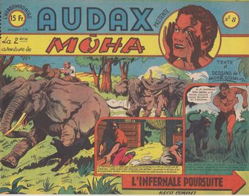 remarques: | la deuxième aventure de Môha sous le titre Audax numéro 8 (1950) l'infernale poursuite par André Gosselin Moha est un genre de Tarzan avec sa panthère noire Baéra >> commentaires sur la collection Aventure de.. voir no 1 Jackie Storm |