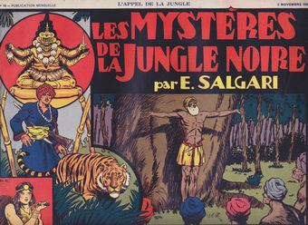 remarques: | dans la collection l'appel de la jungle, les mystères de la jungle noire 1er épisode des aventures de Trémal-Naïk d'après par Emilio Salgari, dessin Morono Celsi numéro 10 du 6 novembre 1938, édition Libraire Moderne (Sage) Tremal Naïk, le chasseur de serpents de la jungle noire est tourmentée par l'image d'Ada, une mystérieuse jeune fille entrevue autrefois sur l'île de Raïmangal >> p. 4 le Banian, arbre sacré, des indigènes avec Kammamuri son compagnon, il partira à la recherche d'Ada >> des aventures au dessin quelque peu fragile mais dont le scénario par Salgari était bien imaginé |