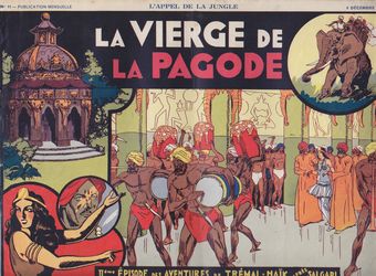 remarques: | dans la collection l'appel de la jungle, la vierge de la pagode, 2ème épisode des aventures de Trémal-Naïk d'après par Emilio Salgari, dessin Morono Celsi numéro 11 du 4 décembre 1938, édition Libraire Moderne (Sage) Tremal Naïk, le chasseur de serpents de la jungle noire est tourmentée par l'image d'Ada, une mystérieuse jeune fille entrevue autrefois sur l'île de Raïmangal >> p. 9 l'horrible divinité Kali >> p. 10 le sauvetage d'Ada Corisanth, vierge de la pagode avec Kammamuri son compagnon, il partira à la recherche d'Ada >> des aventures au dessin quelque peu fragile mais dont le scénario par Salgari était bien imaginé n.b. il existe encore 2 autres épisodes de Tremal-Naïk non collectionnés ici - numéro 13, chez les Thugs (1938) - numéro 14, le simulacre de Vichnou (1939) annexes - couverture du no 11 - couvertures des nos 13 et 14 |