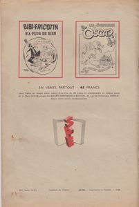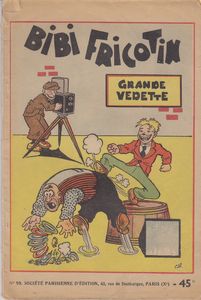 remarques: | cahier broché, 1ère édition AG, 50% couleur 50% noir&blanc, 48 pages, au prix de fr 45.-, 4ème plat SPE Bibi et Oscar, dernier titre: no 13 Bibi n'a peur de rien, couverture et illustrations de Callaud présentation avec texte sous images qui commencent à contenir un peu plus de bulles Bibi Fricotin est invité à tourner un film dans les studios d'Epernay mais en y arrivant, il apprend que la fille du metteur en scène Bob Héchon a été kidnappée, toutefois tout cela n'est qu'une mise en scène pour éprouver Bibi et Bibi est maintenant prêt à tourner un film sur la contrebande et après coup ce sera un film policier avec le détective anglais Watson >> p. 29 Bibi qui prend la place d'un bébé enfin ce sera un film western tourné au Canada et Bibi finira par jouer le héros dans divers autres tribulations filmées avec son nouveau jeune ami, le nègre Coco >> des aventures sans saveur avec un pauvre scénario et un graphisme peu soigné |