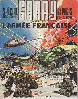 remarques: | commentaires Garry >> voir no spécial Noël 1948 numéro spécial 100 d'août 1956, 50% couleur 50% N&B, 68 pages, au prix de 100.- fr composé de deux épisodes 1/ réédition d'une première aventure du sergent Garry, Palaoua la maudite (allusion à la conquête de Guadalcanal) 2/ présentation de l'arée française en 1956 documentaire réalisé avec l'aide des services de l'armée introduction, l'infanterie, la marine et l'aviation, les décorations françaises, les blindés, l'artillerie, le génie, les transmissions, le service de santé, l'intendance, les troupes aéroportées, les troupes coloniales, la flotte, les grades dans la marine, l'aéronavale, la flotte sous-marine, l'aviation: chasse et bombardiers >> un fascicule tout à fait intéressant |