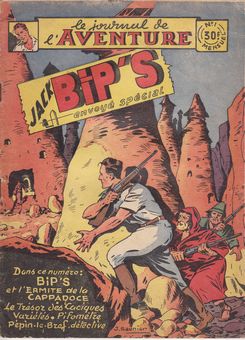 remarques: | le journal de l'Aventure, série de 8 nos 1953-1954 numéro 1 mensuel, 4èm trim. 1953, N&B au prix de 30.- fr les exploits de Jack Bip's, envoyé spécial avec comme titre: l'ermite de la Cappadoce, couverture signée J. Saunier bandes principales: - Jack Bip's par Saunier (un genre de Petit Riquet reporter) - Pépin le Bref (humour) par Kalistrate >> rien de très intéressant |