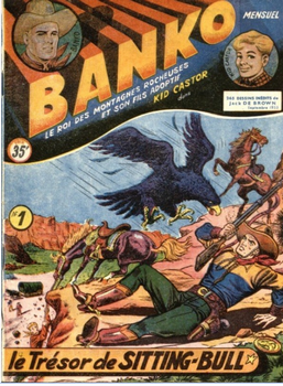 remarques: | éditions de Lyon (Remparts), 36 Numéros du no 1 (9-55) au no 36 (8-58) 36 pages de format 18x23 cm bonne série western par le dessinateur Brantonne, les aventures de Banko le cowboy et son jeune ami Kid Castor >> seul le numéro 30 est collectionné ici à titre d'exemplaire représentatif de la série trois épisodes: la lune de sang, le chien du corbeau et le supplice du bison annexes - couverture du no 30, 1er et 4ème plat - couverture du no 1 |