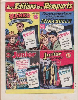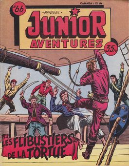 remarques: | dans la collection Junior Aventures des éditions Rempars, Lyon série de 82 numéros de 12-1950 à 9-1957 mensuel, 36 pages, format 14x20 cm, puis 18x23 cm, N&B, au prix de 35,0 fr récits complets divers par différents dessinateurs dont Brantonne no 66, 2ème trimestre 1956 les flibustiers de la tortue texte: Paul Mystère, dessin: Jack de Brown >> une assez bonne histoire de pirates |
