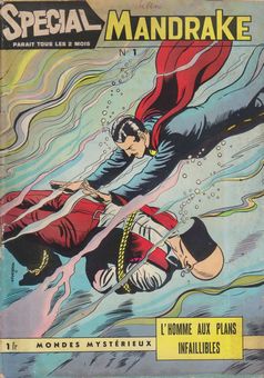 remarques: | adaptation française de la série de Mandrake by Davis+Falk sous le titre Mondes Mystérieux série de 354 numéros de 7-1962 à 3-1972 32 pages format 15x21 cm, 50% couleur 50% N&B, mensuel, au prix de 0,40 fr (fr 1,0 pour ce no spécial) numéro 1 de 8-1963, l'homme aux plans infaillibles les aventures de Mandrake, le magicien et son assistant, le géant noir Lothar contre l'homme sans visage >> un peu meilleur que les aventures du Fantôme |