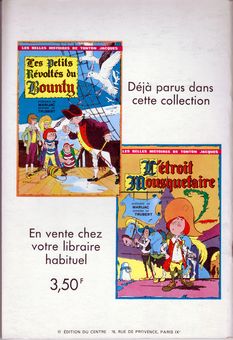 remarques: | genre western larmoyant prépublié dans le périodique Nano et Nanette, archivé sous la section album dans le BDM n.b. à ne pas confondre avec l'orpheline du Far West des éditions Bonne Presse (1958) Cathy avec son chien Toby fait partie d'une caravane qui se dirige vers la Californie, elle est à la recherche de son père et est souvent maltraitée par les gens de la caravane mais un jour, par hasard, elle reçoit la protection d'un mystérieux cavalier qui a été l'ami fidèle du père de Cathy, décédé entretemps elle vivra de nombreuses aventures dont celle de devenir prisonnière des apaches où "petite belette", un jeune apache, deviendra son meilleur compagnon elle sera délivrée par le cavalier solitaire qui par la suite sera pris pour un outlaw et arrêté par un shériff >> la suite dans "la jeune fille du désert" >> du tendre western pour tendres jeunes filles mais bien dessiné par Gloesner avec un solide scénario de Marijac |