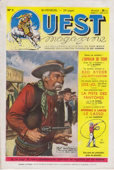 remarques: | série de 6 numéros, bimensuel, 20 pages au prix de 30.- fr principales bandes: - le Colonel par Blasco - Red Ryder par Harmann - Joe-Jo par Martin numéro 2, 16.4.1953 - le colonel, l'orphelin du Texas par Jesus Blasco - Joe-Jo, shériff de 1ère classe par Martin - Red Ryder (le cavalier rouge) avec Petit Castor + carte sur les pistes des pionniers (Lewis+Clarke, Oregon trail, Mormons, Santa Fé et Californie) + aquarelles au 4ème plat >> commentaires, voir numéro 1 Information Jesús Monterde Blasco, dit parfois Montero (né le 3 novembre 1919 à Barcelone, mort le 21 octobre 1995) était un auteur de bande dessinée espagnol, il débute en 1935 dans la version espagnole du Journal de Mickey, puis travaille pour des publications espagnoles à bas prix de cette époque aux années 50, créant le personnage de Cuto, il travaille aussi pour l'international à partir des années 60, créant Main d'Acier (sur des scénarios de Tom Tully) pour la revue anglaise Valiant, au tournant des années 70, il publie quelques épisodes de Paul Foran et Los Guerilleros dans Spirou avant de travailler avec Claude Moliterni à une adaptation de la Bible pour Dargaud, à partir de 1987, il travaille pour Bonelli en Italie, travaillant sur Tex Willer et Yann Cyclone (Capitan Trueno) avec Victor Mora principales bandes: - Route de l'Ouest (la), finie de 1974 à 1985 - Main d'Acier (Collection), finie de 1975 à 1977 - Brik (Mon journal), finie en 1978 - Guerilleros (les), one shot en 1980 - une bible en bande dessinée, de 1983 à 2001 - Religions de la bible (les), finie en 1985 - Rodéo (Spécial), finie en 1992 |